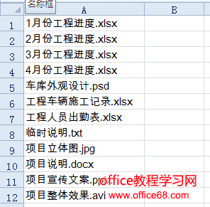 日常工作中,一个项目的文件往往会有很多个,在Excel中制作一个项目文件目录,可以快速方便的查看不同的文件。 如下图所示,就是一个项目文件夹内的所有文件: ![]() 接下来,先提取文件名称。 如果文件比较少,可以直接输入到Excel文档中,但是如果文件比较多,就要想想办法了。 方法一: 在工程文件夹内,新建一个记事本文档,输入下面的内容后保存: