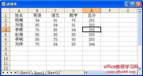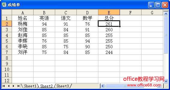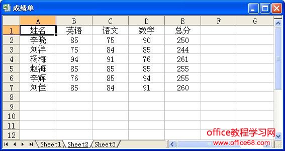 打开一个成绩单工作表,如图1所示,对该成绩表中的总分字段进行由高到低的排序。其具体操作步骤如下: