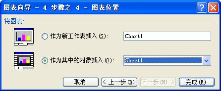 (6)单击“下一步”按钮,弹出“图表向导-4步骤之4-图表位置”对话框,如图5所示。 图5 “图表向导-4步骤之4-图表位置”对话框