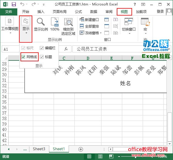 ![]() 单击打开按钮 3 现在,大家会看到用Excel打开html文件的效果,默认的是没有网格线的。如果大家不习惯,可以在“视图”选项卡的“显示”组中将“网格线”勾选出来,效果如下。