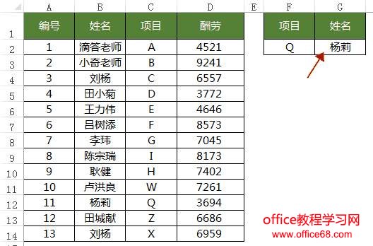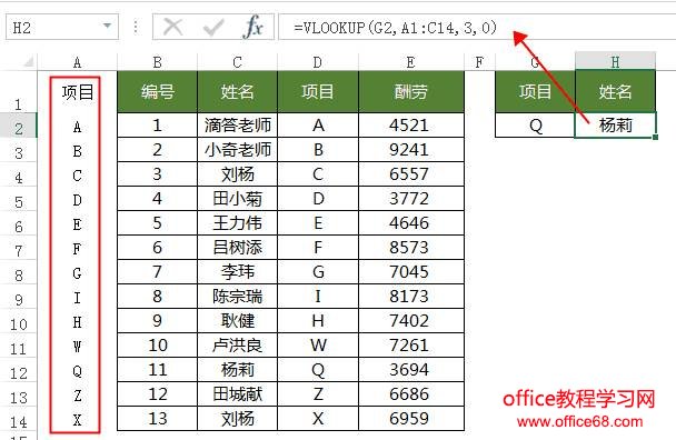 如果你不想用这么长的公式,想要偷懒,换个思路吧,有时候思路比技法更重要。既然VLOOKUP只能从左到右查找,咱们增加辅助列,项目放到姓名的左面就可以了。