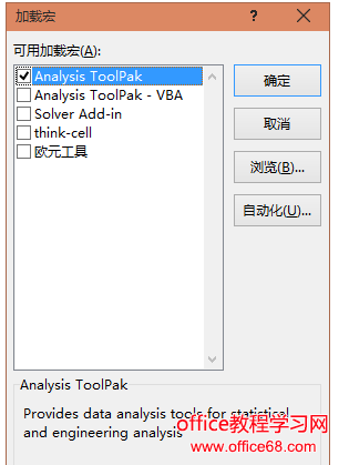 然后在下图处打勾即可,单击确定完成加载工作。接着就可以使用WEEKNUM函数了。