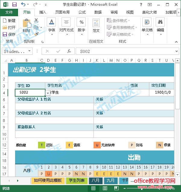 标签(Tag):excel excel2013 excel模板创建学生出勤表