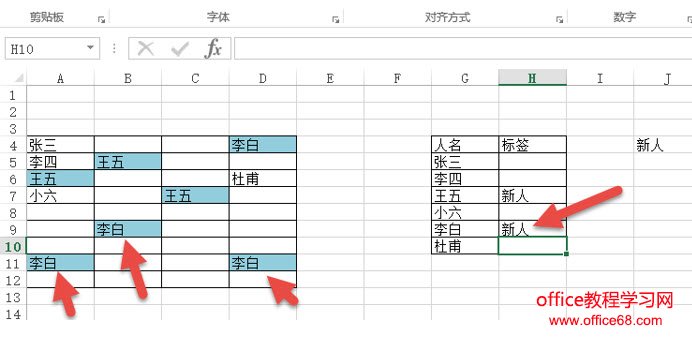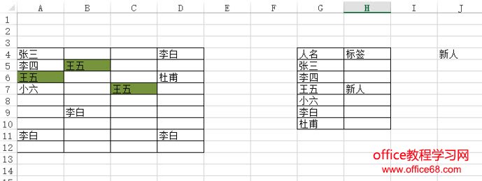 如果“李白”也是“新人”,A表中的李白会自动变颜色。