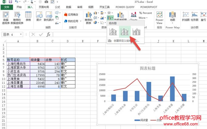 补充:直接产生次坐标组合图 牛闪闪一直在强调图表可以秒做,如果你对Excel2013图表够熟悉的话,你会发现上面这个图可以直接秒做。方法很简单。直接选择下图箭头的图表按钮。这个图表是“次坐标上的折线图”。当数据数量级别差异比较大的时候,就可以使用。