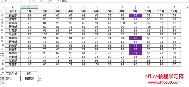 我们只要改改B17和B18的月份和部门,对应的单元格就会显示颜色。