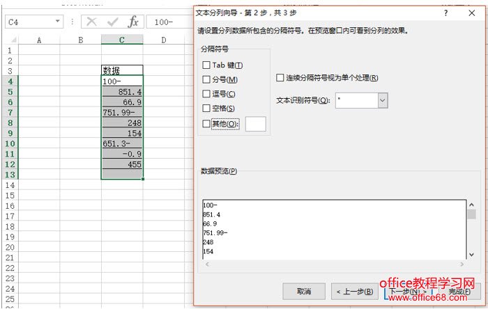 将会得到如下效果,即横杠在后面的数据,都会变成负数表达。这也是分列十分有趣的现象,希望大家能够知晓。