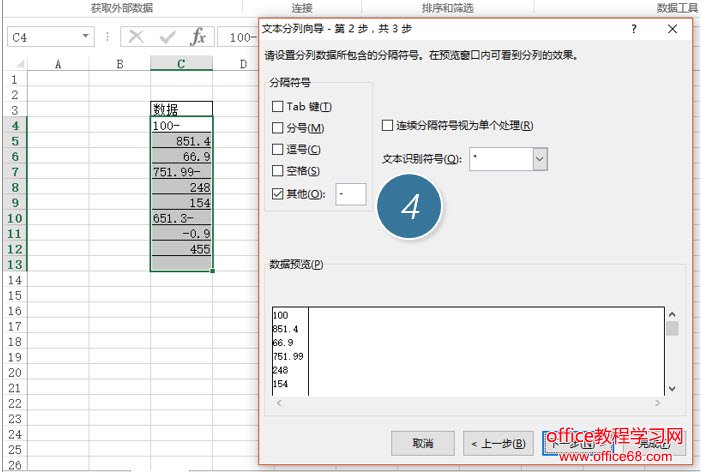 在分隔符号设置中,打勾其他 并输入-(下图4处)