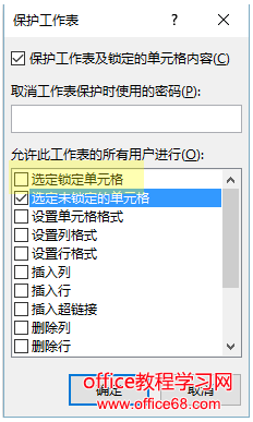 这一步的设置,是让用户在保护工作表的前提下,还够对工作表做的操作。