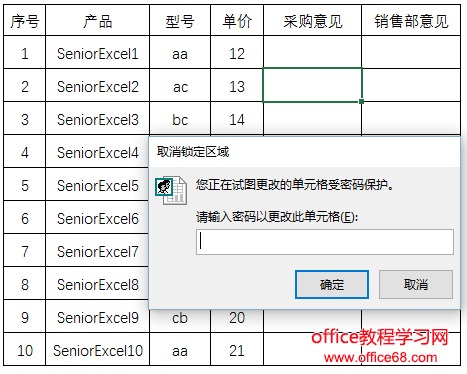 比如一张商品的报价表,需要征求采购部和销售部的意见,每个部门有特定的填写区域,相互不能修改。