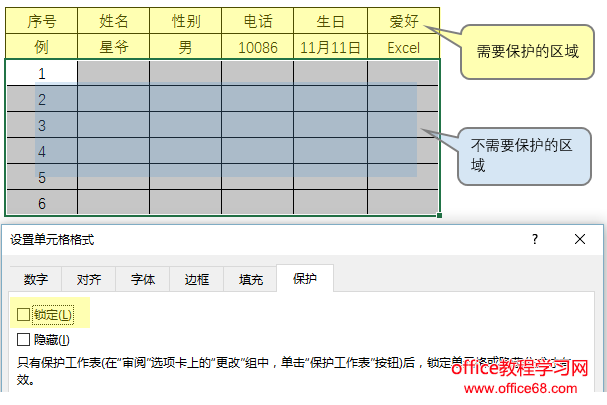 最终的效果就是不需要保护的区域可以进行数据录入,而需要保护的区域无法修改。