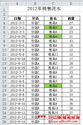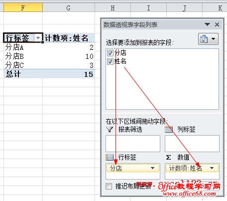 在用数据透视表分析数据的过程中,有时需要统计某字段中不重复值(唯一值)的数量。例如下所示的数据源为一个随日期不断增加记录的销售流水表,其中各“分店”都有一些人员包含多条销售记录,如“姓名4”。现在需要在数据透视表中得到各“分店”有销售记录的人员数量,即得到表中各“分店”不重复“姓名”的数量。 如果直接在数据透视表中把“姓名”字段放到“数值”区域,仅能得到全部记录的计数值,而不是唯一的“姓名”数量。 在这种情况下,可以用添加辅助列、使用SQL命令和利用PowerPivot的方法在数据透视表中得到不重复值数量。本文以上图中的数据为例,介绍在Excel 2010的实现方法,供参考。 方法一:添加辅助列 1.在表格的右侧增加一个辅助列,并设置一个列标题,如“人员数量”,在E4单元格中输入公式: =IF(COUNTIF($C$4:C4,C4)=1,1,"") 然后填充公式到最后一行。 2.将数据区域转换为Excel 表格,这样当增加记录后,数据透视表可自动扩展数据源。方法是选择数据区域中的某个单元格,如C10单元格,依次选择“插入→表格”,弹出“插入表”对话框,单击确定。Excel将创建一个名称为“表1”的Excel表。 3.创建数据透视表。 选择上述表格中的某个单元格,依次选择“插入→数据透视表→数据透视表”,弹出“创建数据透视表”对话框,设置放置数据透视表的位置后确定。 将“分店”字段拖入到“行区域”,将“人员数量”字段拖入到“数值区域”。 右击数据透视表中的“人员数量”字段,选择“值字段设置”,在弹出的对话框中将该字段的“值汇总方式”由“计数”改为“求和”后确定,即可得到各“分店”中唯一“姓名”的数量。 方法二:使用SQL命令