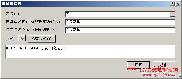 以后的步骤同上,不再赘述。 方法三:用PowerPivot PowerPivot for Excel即Microsoft SQL Server PowerPivot for Microsoft Excel,一种功能十分强大的Excel外接程序。如果已下载并安装了PowerPivot,可以通过创建度量值并设置数据分析表达式(DAX),从而十分轻松地在数据透视表中统计唯一值数量。本文介绍在Windows 7+Excel 2010中的操作步骤,旨在说明一种方法,仅供参考。 1.将数据链接到PowerPivot。 选择数据区域中的某个单元格,在功能区中选择“PowerPivot”选项卡,在“Excel数据”组中单击“创建链接表”。弹出“创建表”对话框,单击“确定”按钮。 Excel会自动将该区域转换成Excel表,并打开PowerPivot窗口将数据链接到PowerPivot中,本例表的名称为“表1”。 2.创建数据透视表。 选择PowerPivot窗口界面的“主页”选项卡,在“报表”组中单击“数据透视表→数据透视表”,将返回Excel工作表界面,并弹出“创建数据透视表”对话框。 根据需要选择数据透视表存放的位置后确定。 3.新建度量值。 度量值是数据透视表或数据透视图中的一种动态计算,它会随着所选择或筛选的数据不同而得到动态的结果,度量值只能放置到数据透视表的“数值”区域中。通过在度量值中创建数据分析表达式(DAX),就像在Excel单元格中创建公式一样,可以实现许多功能强大的计算。新建度量值的步骤如下: 选择“PowerPivot”选项卡,在“度量值”组中单击“新建度量值”。在弹出的“度量值设置”对话框中,给新建的度量值设置一个名称,如“人员数量”,在“公式”下方的区域输入DAX公式: =COUNTROWS(DISTINCT('表1'[姓名])) 或: =COUNTROWS(VALUES('表1'[姓名])) 说明:DISTINCT函数和VALUES函数可返回一列由包含不重复值(唯一值)组成的表。 单击“确定”按钮,在数据透视表字段列表中会增加一个度量值“人员数量”。勾选“分店”和“人员数量”,即可在数据透视表中得到各“分店”不重复的“姓名”数量。 4.刷新数据。 当在工作表中添加或更改数据后,分别在“PowerPivot”选项卡和“数据透视表工具-设计”选项卡中单击“全部更新”和“刷新”,即可更新数据透视表中的数据 |
