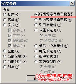 现在要找出哪些分公司没有完成任务或超额完成任务,利用Excel的“定位”命令可以快速查找出来。步骤如下: 1.选择数据区域,即图中的C5:F19。 2.单击菜单“编辑→定位”,或按F5,或Ctrl+G,打开“定位”对话框。 3.单击“定位条件”按钮,弹出“定位条件”对话框,选择“行内容差异单元格”。