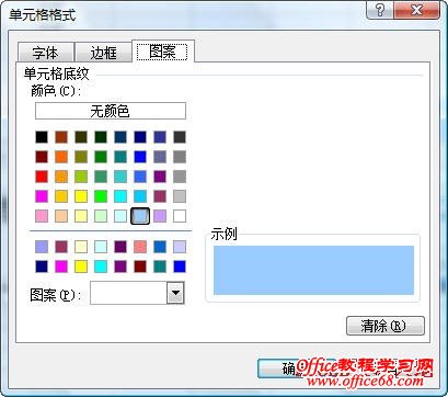 单击“格式”按钮,选择一种单元格格式,本例中将单元格底纹设置为淡蓝色。最后单击两次“确定”。