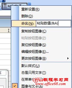 2. 当你复制完内容后, 在另一格内,点击上面的 按钮即可。 数值就可以直接粘贴过去了。 3.如果想使用快捷键,在拖到工具栏目后右键(自定义对话框不关闭的情况下)选择总是使用文字 ,&后面的是快捷键的字母,你可以选择任何一个你喜欢的字母,本人是用A字母,此时就可以使用粘贴数值快捷键ALT+A了。如图: