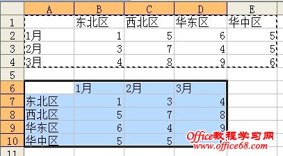如果要求将月份改为横向,地区改为纵向,那么该如何操作呢?其实方法非常简单,这里其实是“选择性粘贴”的一个技巧应用。