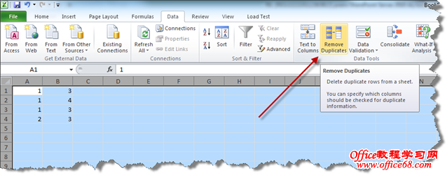 解决一个问题, 需要移除重复记录, 懒得写VBA函数做这样的事, 偶然间发现这个Excel的这个功能,和大家分享一下: 如图: