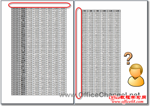 在工作表中,可能不乏一些横向或纵向跨度比较大的数据表格(如图1所示),当打印此类数据表格时,可能会因为打印的页面中缺少标题行或标题列,而降低了数据的可读性(如图2所示)。如何使打印的每个页面中均包含标题行和标题列呢?此时可以按照如下步骤进行操作。
