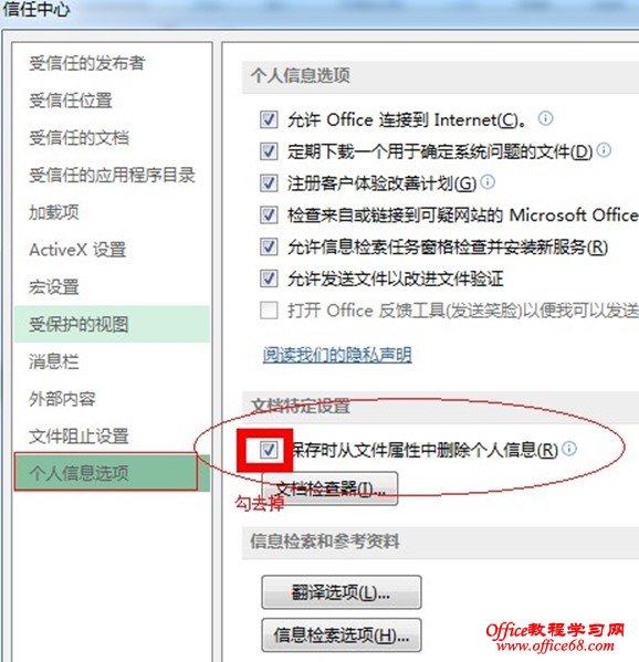 今天要讲的东西,很简单,有些人也知道。但有些人不知道,但看过一次会也就知道了。好几次有朋友问我这样的问题,说弹出这样的对话框,怎么办。 想必很多人都不陌生吧。 处理方法其实很简单,就是去掉个人信息。 在07,10,13版本中的操作是这样的。03本人很久不用了,也建议大家别再用了,新版本功能多,且生成的文件也更小。03已经是10年前的东西了。接着来谈如何操作去掉个人信息。下面方法适合07,10,13. 07先左上角的office按钮,进入选项(10,13点左上角的文件看到弹出的选项),然后