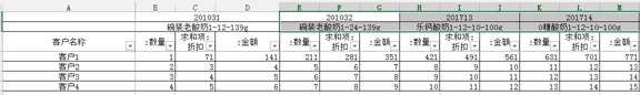 了为什么我们要学index,match。单纯的vlookup真的不够用了。同时也解释了为什么合并单元格是表格的大忌。 首先看下问题:表1如何通过公式到表2,两个表的不同:纵向客户名称顺序一致,横向品相顺序不同,且品相很多,如何不用手工机械的调整,而是利用公式实现表一到表二。 这话说的好,如何不用手工机械调整。热衷于机械调整的朋友,就不用往下看了。表1如下 表2: 当然内容的列数还有更多,就不一一截图了。 从表1到表2是个多条件查找问题,但首先我们要去掉合并单元格。下面举例为什么要这么做,大家看到了吧,因为合并单元格后,B2,C2都成为空值或0,具体形式哪种,取决于你的单元格格式。总之合并单元格后不能直接进行相应的公式书写。当然lookup函数可以实现,但太麻烦了。 我们把表1表2的合并单元格都去掉,最后都得到这样的。
