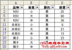 筛选是Excel中常用的操作之一,它可以让某些行隐藏起来以方便查看。例如在下图的表格中,仅显示颜色为黑色的产品。 Excel中的筛选包括自动筛选和高级筛选,本文介绍Excel 2003中的自动筛...