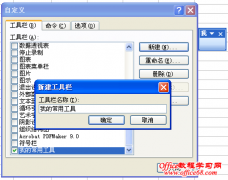 在excel2003中,用户可以根据自己的操作习惯来自定义工具栏,例如将自己常用的命令添加到自定义的工具栏上。具体操作如下: 1.打开自定义对话框。在菜单栏的工具自定义, 打开自定义对话框,切换到工具栏选项卡(或者点击菜单栏的视图工具栏自定义,同样也打开自定义对话框并自动切换到工具栏选项卡)。 2.新建并命名工具...