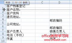 我们制作excel客户档案登记表的时候,单元格A1中的内容已经超出了1个单元格的范围, 我们需要对excel单元格的列宽进行调整, 以便使之能够满足尺寸要求。同时我们也可以根据需要进行行高的设置, excel中设置行高和列宽 的方法非常的简单。 1、将光标指向第1行与第2行之间的分隔处,当光标变成双向箭头时,单击并拖动分隔...