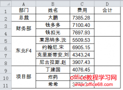 今天主要为大家分享这样一个SUM函数求和案例: 这个案例来源于部落窝教育Excel课堂学员问得比较多的一个问题,如何根据部门来汇总合计相应的费用,在D列填写公式。 操作步骤: 1、先选择D2:D11单元格区域; 2、在编辑栏中输入公式:=SUM(C2:C11)-SUM(D3:D11) 3、最后,按【Ctrl+Enter】批量填充公式 最后再补充上相应的动...