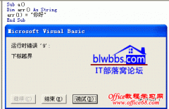 Excel中vba提示下标超界,说明对象不存在或者数组元素不存在。 举个简单的例子:工作表中没有1月这个工作表,却用Sheets(1月);数组定义的是arr(1 to 10),却用Arr(11),都会出现下标越界的提示。 简单的理解:下标越界就是引用超出了所在的范围。 当我们在excel的VBA中输入下面代码,运行,就会出现运行时错误9下标越界的...