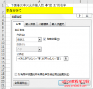 只允许输入某个特征的数据 搭档函数:OR或函数,Left左截取函数。 以下案例是说单元格内只允许输入李开头或王开头的数据,问你怎么办? 步骤:先选中A列,然后点击数据-数据验证(2013版之前的叫作数据有效性),然后在自定义输入框中输入=OR(LEFT(A2,1)=李,LEFT(A2,1)=王),按确定。...