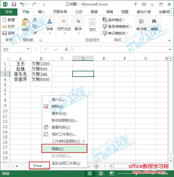 工作表多了不要紧,有很多人把不常用的工作表都隐藏了起来,因此当他们找起某个工作表的时候就方便了许多,当然,也是可以取消隐藏的,千万不要担心隐藏了就没了,所以今天我就教给大家怎么去做。 方法如下 打开Excel表格,选择要隐藏的工作表标签,单击右键弹出快捷菜...