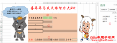 如果对网上的少儿算术软件不满意,那就亲自动手编一个Excel版的算术测试软件吧!用Excel借助简单的VBA代码就可以编出这样的测试软件。 1. 卡通人物装点界面引兴趣 利用工作表制作软件的主要操作界面。可以利用小朋友喜闻乐见的动画人物装点操作界面,如喜羊羊、灰太狼等(图1)。 1.C6单元格作为设置出题范围的显示单元格...