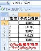 在Excel中,如果要 检验数值是否为奇数 ,可以使用ISODD函数检验数值是否为奇数。Excel2007可使用ISODD函数检验数值是否为奇数。 如上图所示,在B2单元格输入公式: =ISODD(A2) 按回车键即可检验数值是否为奇数,返回TRUE或FALSE。 Excel2007可使用ISODD函数检验数值是否为奇数。 相关说明: ISODD函数语法:ISODD(number)...