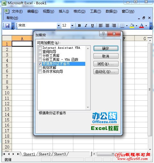 最后加载完勾选,A处新出现的“根据身份证求省市”复选框并单击“确定”按钮即可。