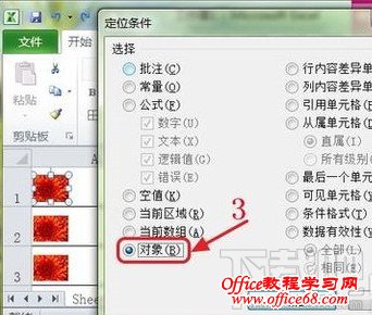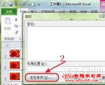 方法三:继续选择一个图片,然后再按下键盘上的“F5”键,在出现的界面上点击“定位条件(S)”按钮。数字“2”,那里。