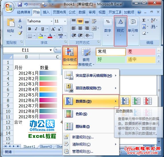 如何让Excel2007单元格数据拥有丰富多彩的颜色