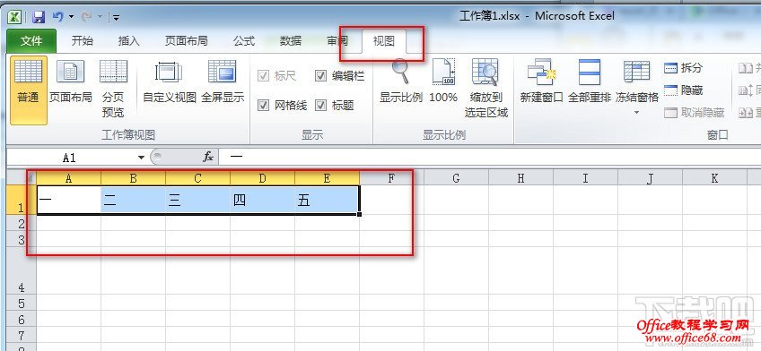 1:每行填写一个数字,全选中后点击红色框框的视图栏。
