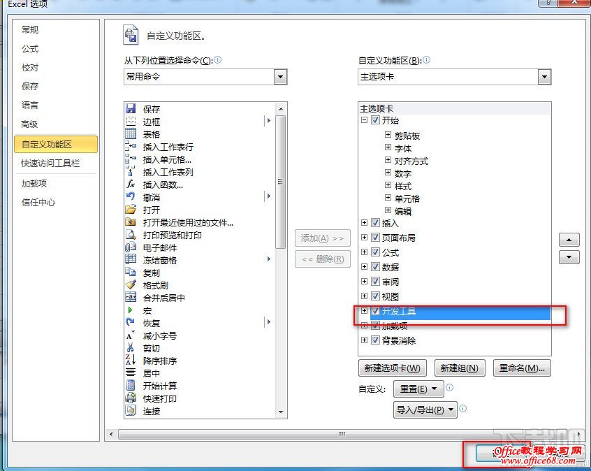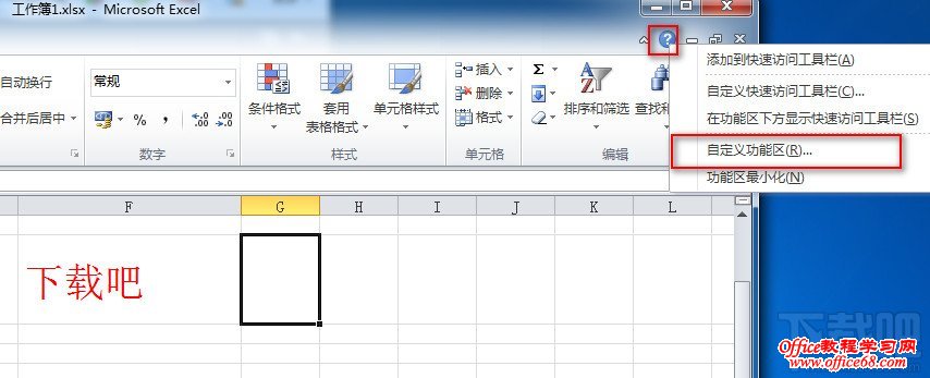 有时候我们需要用到宏等开发人员选项,但是往往第一次用时,我们会发现excel2010中没有这个功能选项,这时我们不知道去哪里弄,不去那里加载,现在我来教大家excel2010如何添加开发人员选项。 excel2010如何添加开发人员选项: 1:打开office2010,在红色框框那里,右键,选择“自定义功能区”