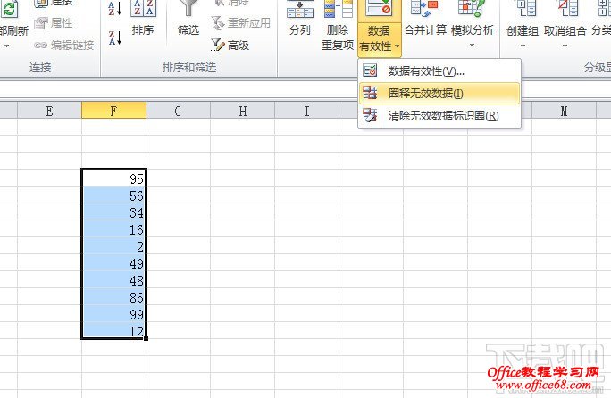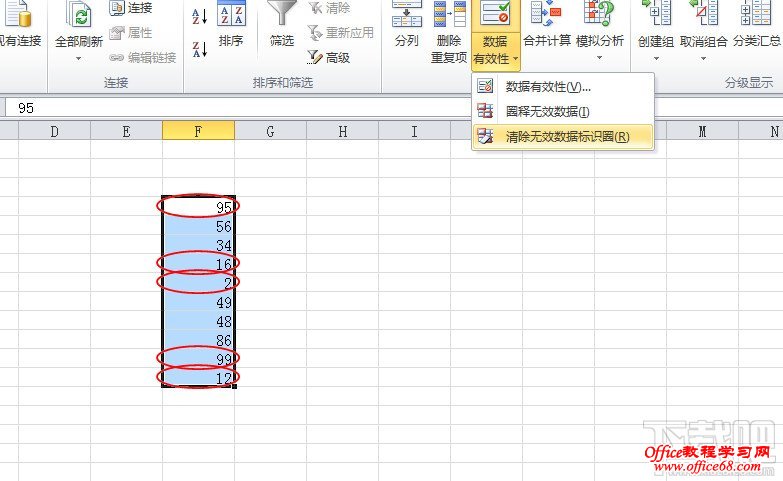 2:设置“数据有效性”,“圈释无线数据”,就得到下图了。
