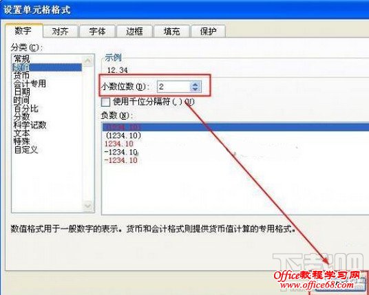 2:分类,选择数值。小数点后几位数字。这个可以根据你的需要来设置的。最后点击确定。
