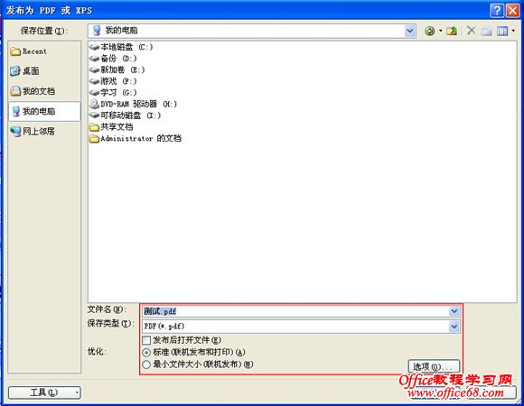 单击PDF或XPS