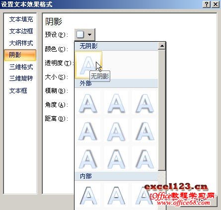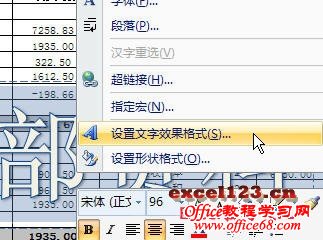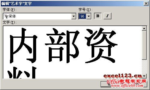有时在打印一些重要文件时需要给文档添加水印,例如“内部资料”、“保密”字样,让使用者知道文档的重要性。在Word 2003中,可以通过菜单“格式→背景→水印”命令来给Word文档添加水印效果,但Excel却没有提供此功能。我们可以通过使用艺术字和在页眉中使用图片的方法来给Excel工作表添加文字水印,本文介绍使用艺术字的方法,在页眉中使用图片的方法本站将另文介绍。 Excel 2003: 1.打开需要设置水印的工作表,单击菜单“插入→图片→艺术字”,弹出艺术字库对话框,选择左上角的第一个艺术字样式,单击确定。 2.在弹出的“编辑‘艺术字’文字”对话框中,输入所需的文字,如“内部资料”等,选择适当的字体和字号,此处为“宋体”、“96”,并设置为粗体。 3.单击“确定”按钮,Excel将在表格中插入艺术字。鼠标右击插入的艺术字,在弹出的菜单中选择“设置艺术字格式”。 4.在弹出的“设置艺术字格式”对话框中,选择“颜色与线条”选项卡。在“线条”区域中,单击“颜色”右侧的下拉列表,选择“无线条颜色”。 然后在“填充”区域中,单击“颜色”右侧的下拉列表,选择“灰色-25%”。 拖动下方的“透明度”滑块,为艺术字设置一个适当的透明度,此处设置的透明度为47%。 最后切换到“大小”选项卡中,在“旋转”右侧的文本框中输入一个角度数值,如“315”,单击“确定”按钮。 5.在工作表中,将艺术字拖动到合适的位置并将其复制到需要打印的每一页中。下图为打印预览效果: Excel 2007: 1.打开需要添加水印的工作表。在功能区中选择“插入”选项卡,在“文本”组中,单击“艺术字”按钮,选择左上角第一个艺术字样式。 2.输入所需的水印字样,如“内部资料”等,并设置其字体和字号,如此处为“宋体”、“96”、“粗体”。 3.选择所有文字,鼠标右击,在弹出的快捷菜单中选择“设置文字效果格式”。 弹出“设置文本效果格式”对话框。选择左侧区域中的“阴影”,单击“预设”右侧的按钮,选择“无阴影”的样式。 选择左侧区域中的“文本边框”,选择“无线条”。 最后选择左侧区域中的“文本填充”,选择“纯色填充”,单击“颜色”右侧的按钮,选择“白色,背景1,深色 25%”。 然后调整透明度至50%左右,关闭对话框。 4.选择艺术字,单击功能区中的“格式”选项卡,在“排列”组中单击“旋转按钮”,选择“其他旋转选项”,弹出“大小和属性对话框”。 选择“大小”选项卡,在“旋转”右侧的文本框中输入一个角度数值,如“315”,关闭对话框。 5.在工作表中,将艺术字拖动到合适的位置并将其复制到需要打印的每一页中。 |