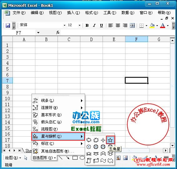 因公司没有现成公章打印表格,这时用户可以在Excel当中绘制公章在将其打印出来,按照下面的方法操作即可设置一个非常精美的公章。 操作步骤
