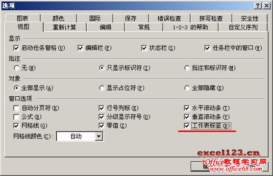 如果Excel中的某个工作表被隐藏了,其工作表标签就不会显示,在Excel 2003中单击菜单“格式→工作表→取消隐藏”;在Excel 2007/2010中的“开始”选项卡“单元格”组中单击“格式→隐藏和取消隐藏→取消隐藏工作表”,弹出“取消隐藏”对话框,在其中选择要显示的工作表,单击“确定”即可。 有时还会遇到这种情况,即Excel工作簿中所有的工作表标签被隐藏起来了,这时可以通过下面的方法让其显示出来。