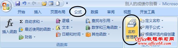 3.设定名称。单击“公式”选项卡,在“定义的名称”组单击“名称管理器”(见图4),在打开的“名称管理器”对话框中单击“新建”打开“新建名称”对话框,在“名称”框中输入“name”,在“引用位置”框中输入“=OFFSET(Sheet1!$B$2,1,0,COUNTA(Sheet1!$B:$B)-1,1)”,单击“确定”返回名称管理器(见图5)。再次单击“新建”建立一个名称为“grade”、引用位置为“=OFFSET(Sheet1!$C$2,MATCH(成绩查询!$D$1,name,0),0,1,11)”,然后单击“关闭”按钮退出。