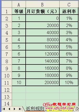 这天,本本又在发牢骚了:“唉,刚把业务员的提成算好,又要按各客户的月订货额计算返利,分10个等级,真搞死人了。”(见图1)