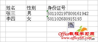 对于超过12位的数字(包括12位),Excel会自动以科学记数法显示,看起来不舒服。当我们要把带有身份证号的Word表格复制到Excel中去,就会遇到这种情况。那么,应该怎样保持身份证号的原貌呢?