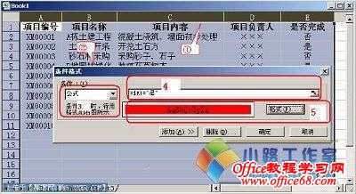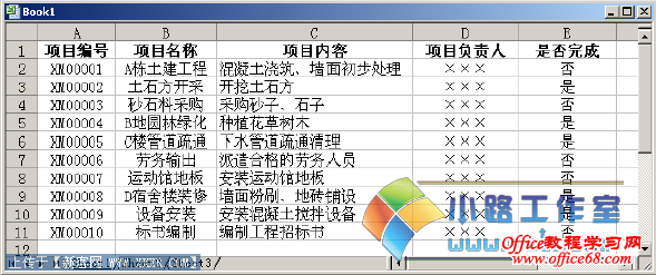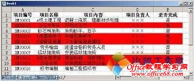 例如:下图所示的工作表中有多条记录,要求当字段“是否完成”列中为“否”时,突出标识该行(本例中将该行突出显示为红色),使用户清楚没有完成的工作;当为“是”时,突出标识的背景色自动消失。