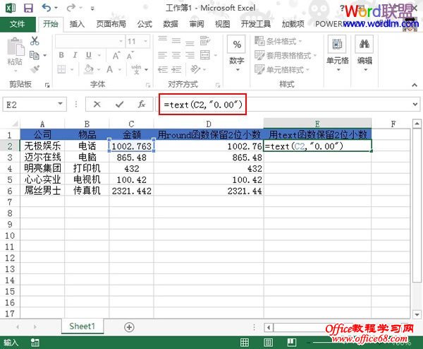 ③在E2单元格输入公式: =TEXT(C2,"0.00")